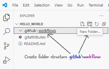 workflowsfolder, create a file namedhello-github-actions.yml. - Add the following code to