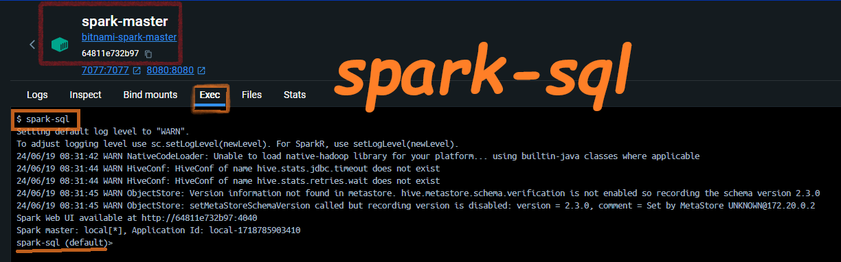 | Volumes | /opt/bitnami/spark/tmp, /opt/bitnami/spark/conf, /opt/bitnami/spark/work, /opt/bitnami/spark/logs, spark-warehouse:/user/hive/warehouse |