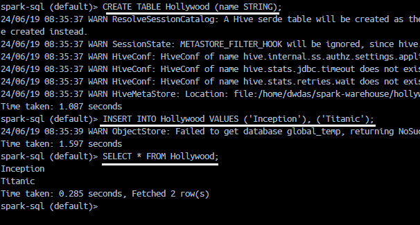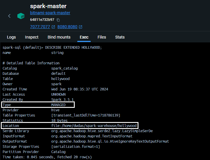 Note: its a manged table in location /home/dwdas/spark-warehouse/