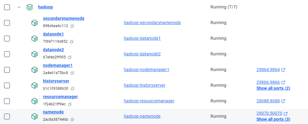 | Ports Mapped | HDFS NameNode UI | 9870:9870 |