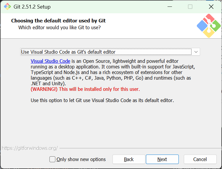 This is actually pretty simple. The very first thing you always need is this software called Git. This is the software. So to install it, just visit this link, click download (I’m talking about Windows here), run the installer, and go next → next → next. Below are some snapshots of the installer screens that you may or may not see in the exact same order.