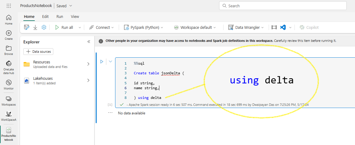 Go to the lakehouse, expand the table, and you will see that all the JSON data has been loaded into the Delta Lake table.