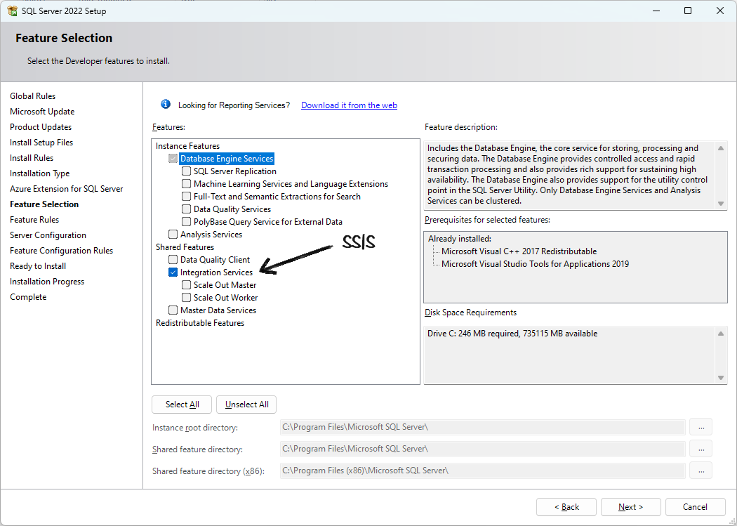 SSIS is installed as an option during MSSQL installation. There is no separate installation of this.